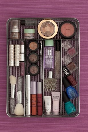 1. Use porta-talheres para organizar maquiagem e bijuterias.