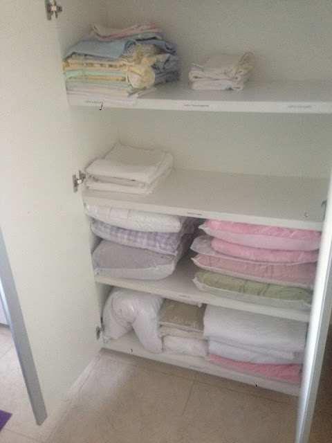 Armário de roupa de cama e banho organizado