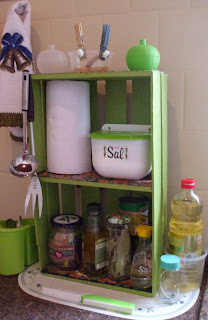Esse já foi de presente para a prima Sil – Vai pendurar na parede proximo ao fogão para guardar temperinhos Esse está apoiado sobre a bancada da pia da cozinha que é grande